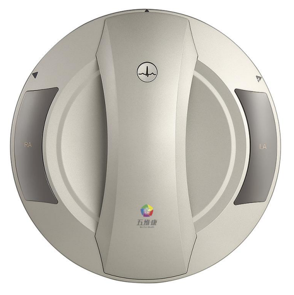 一個圓盤,直徑21cm,一斤重,背面8個電極,正面2個電極,看上去像極了一個微型飛碟,這就是五維康公司按照醫(yī)學(xué)標(biāo)準設(shè)計十二導(dǎo)聯(lián)、獨創(chuàng)手持式設(shè)計產(chǎn)品——“飛碟心電儀”。這已是公司上市的第2代產(chǎn)品,獲得了二類醫(yī)療器械注冊證,并已進入批量生產(chǎn)和推廣階段。這個看上去并不復(fù)雜的“飛碟心電”,在內(nèi)部測試階段已經(jīng)迭代了N多樣式。